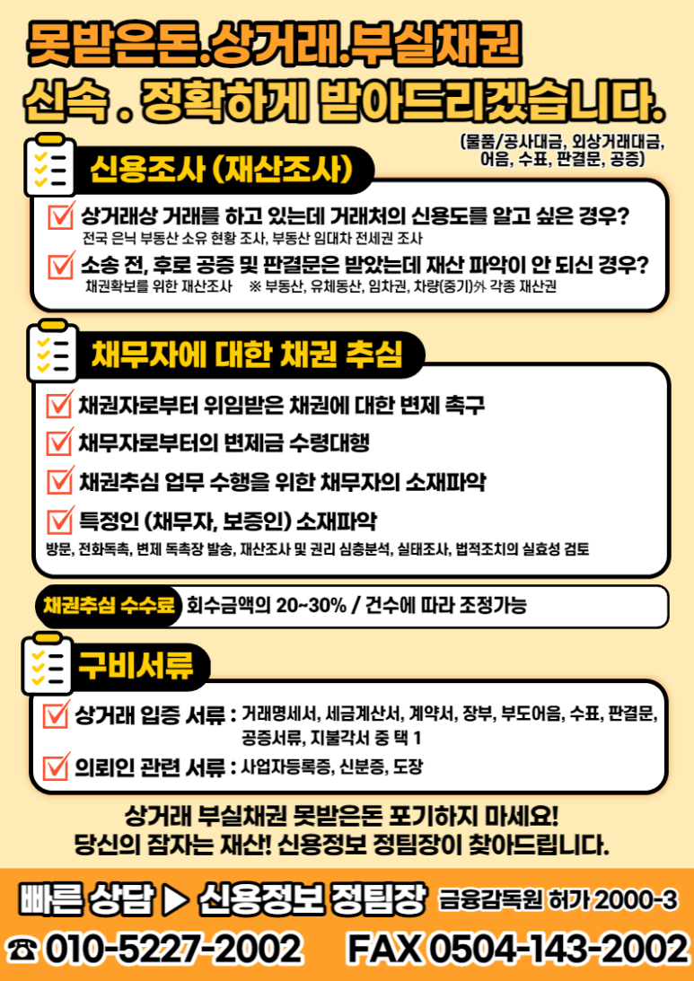 미수금 채권추심은 정팀장에게 맡겨주세요.